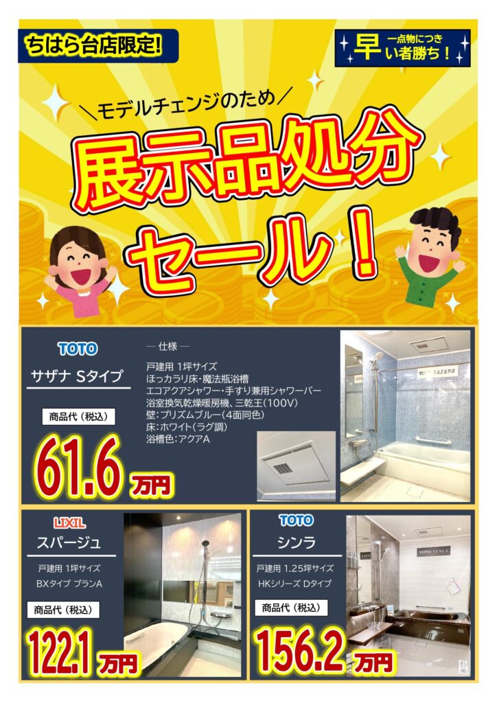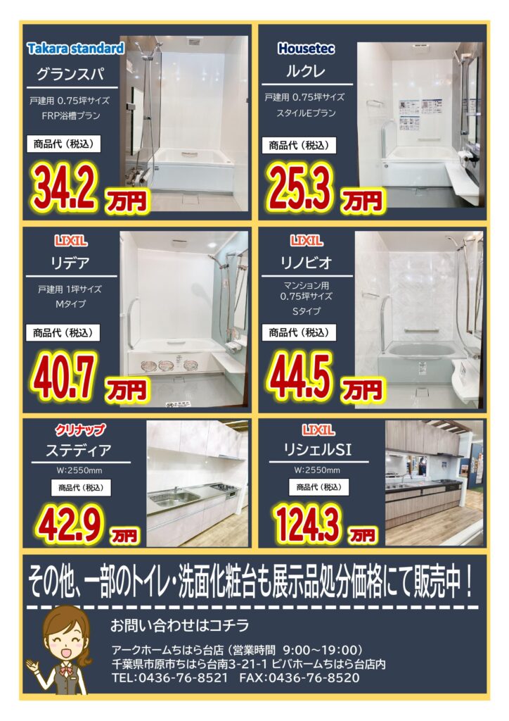 アークホームちはら台店では、モデルチェンジに伴う「浴室・キッチンの展示処分セール」をスタートします!