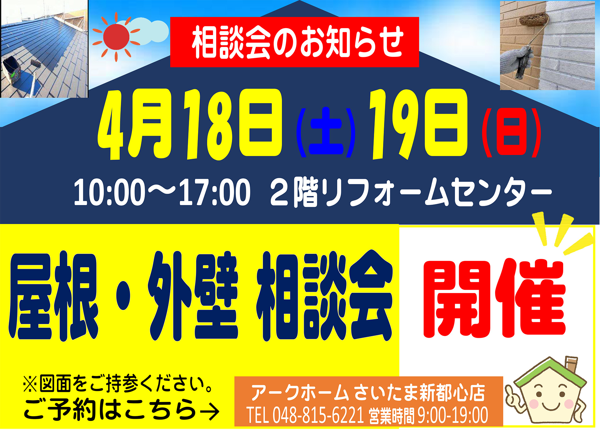 アークホームさいたま新都心店ではビバホームさいたま新都心店内の2階にて、4月18日(土)・19日(日)に、リフォーム相談会を開催します。