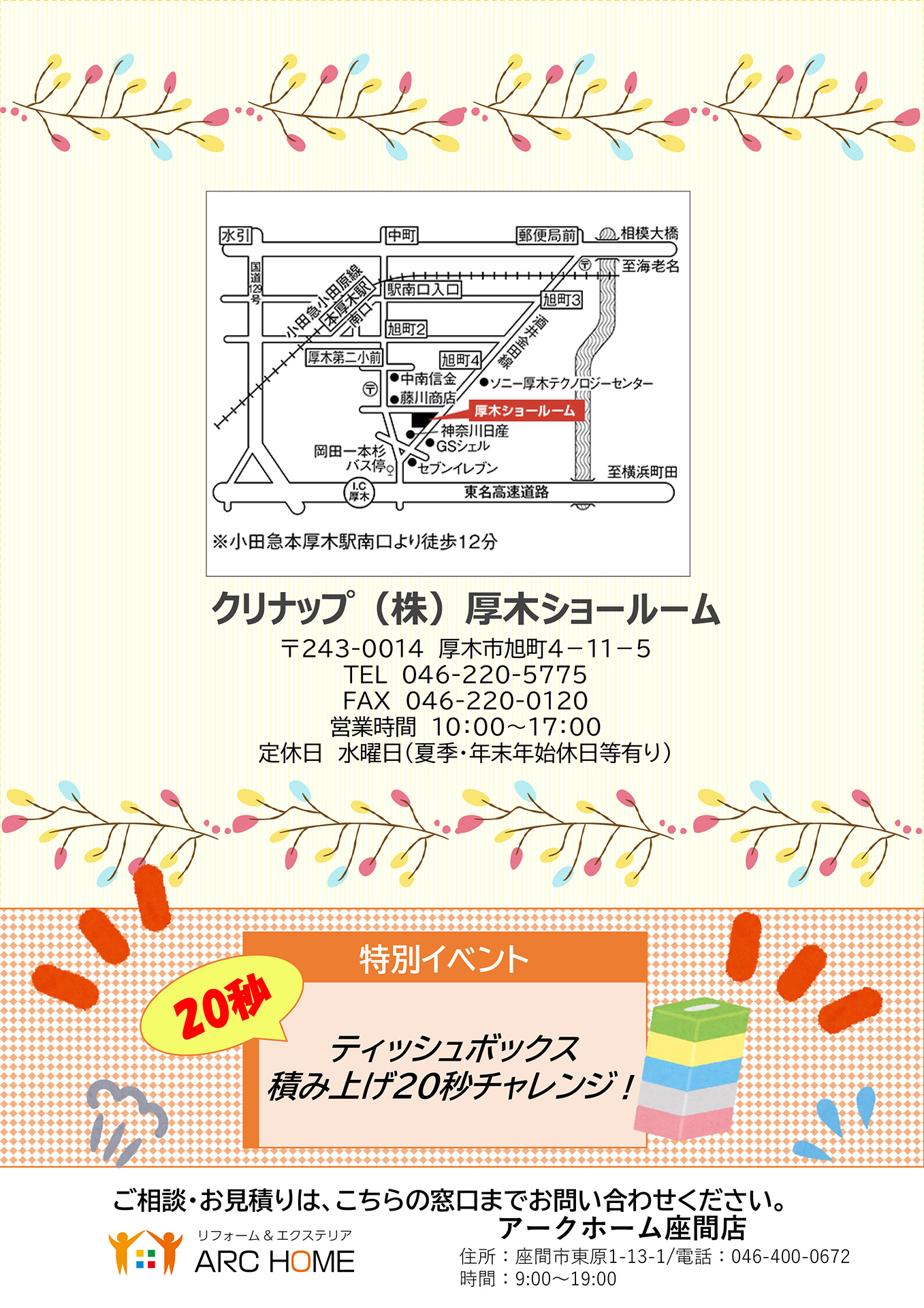 ご予約・お問い合わせは、アークホーム座間店(046-400-0672)までお電話をお待ちしております。