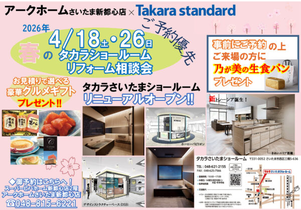 【4/18・4/26限定】タカラスタンダードショールームで水まわりのお悩み解決しませんか?