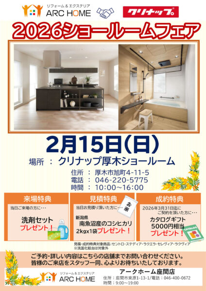 【店舗限定】2/15(日) クリナップ厚木ショールームにて「2026ショールームフェア」を開催します!