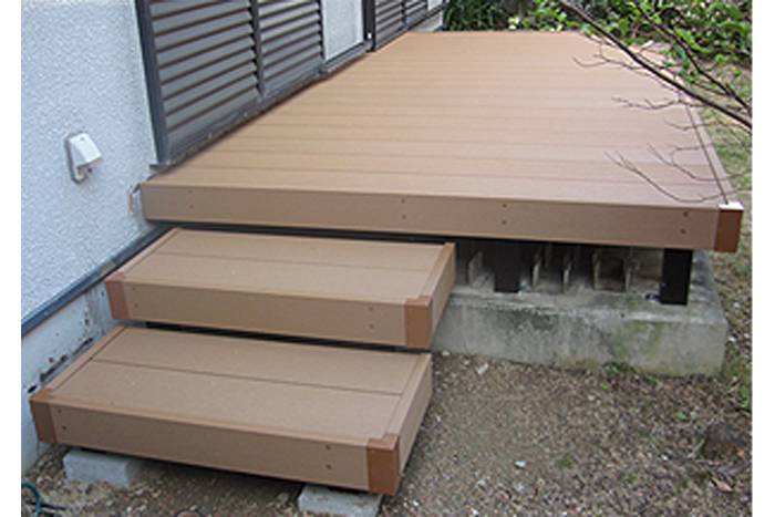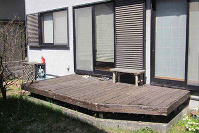 古くなった木製デッキを、樹脂製デッキにする事で、