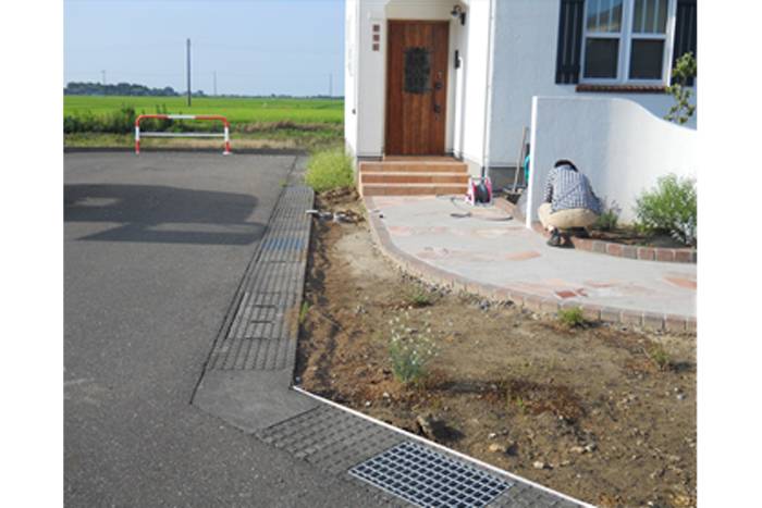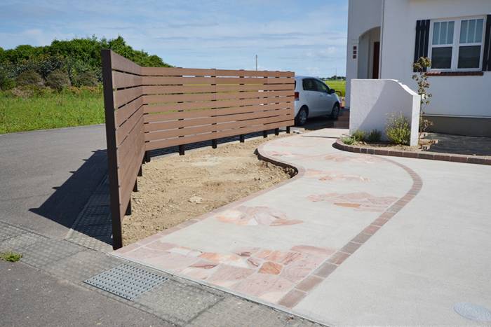 家・アプローチの景観にもマッチした樹脂製目隠しフェンスを敷地に合せて施工しました。