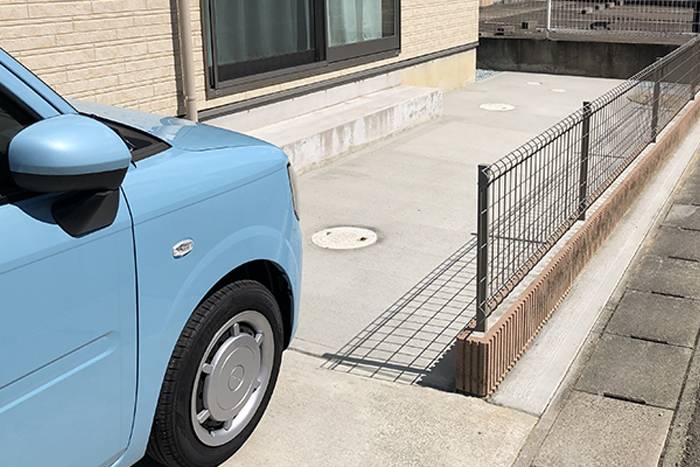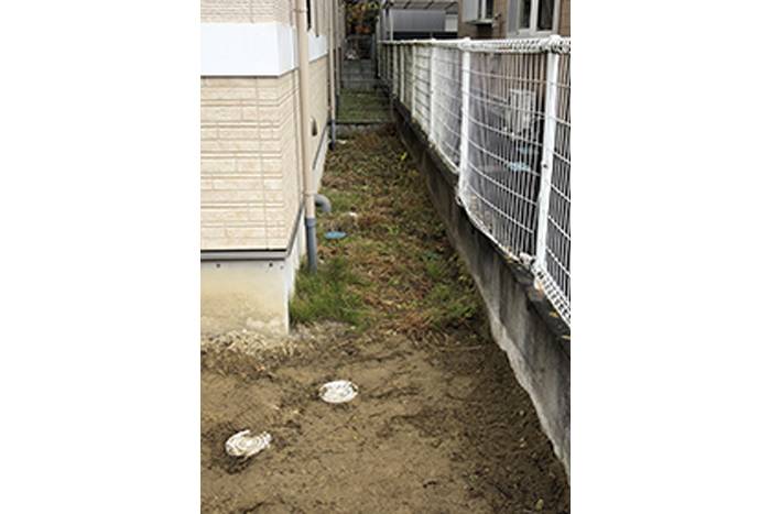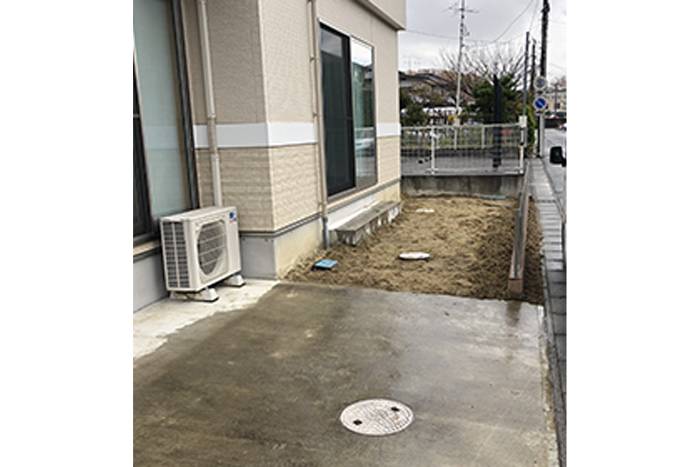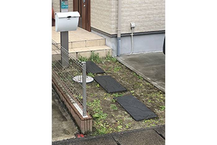 玄関アプローチ、庭が土で雑草処理に困っていました。