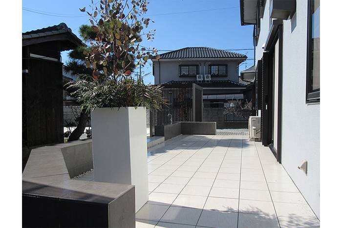 これからはリビングから段差なくスムーズに利用できるようにタイルテラスを採用しました。