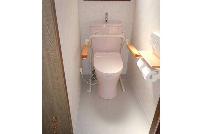 腰を痛め、立ち上がりをサポートするためにアームレスト手すりを取付。