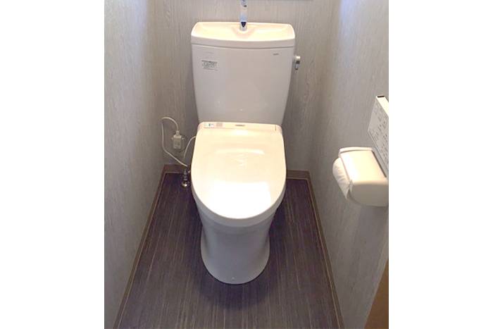 トイレ改装工事 トイレ 水回り 2016.9.27 ◆After【トイレ】TOTO:ピュアレストQR◆Before【トイレ】施工前 ポイント 便器を節水トイレに変更し内装もタイルからクロスに改装しました。 使用した商品 ◆トイレ TOTO:便器 ピュアレストQR[ウォシュレット:KM TCF8HM43(ノズルキレイ/ダブル断熱/瞬間式)] ◆内装 サンゲツ:クロス リザーブサンゲツ:クッションフロア H FLOOR 概算施工金額 ¥289,000 事例No.3504-03-558-022