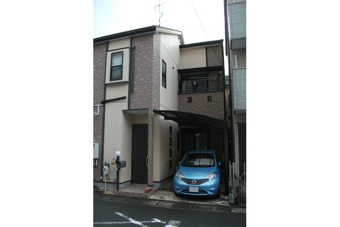 サイディング外壁の色柄を生かす為に、クリア塗装を施しました。