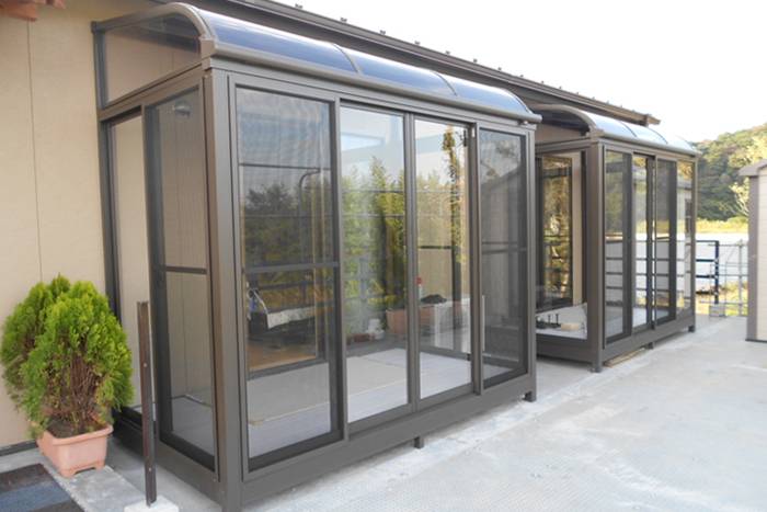 1つは物干しスペース、もう1つはくつろぎスペースとして利用。