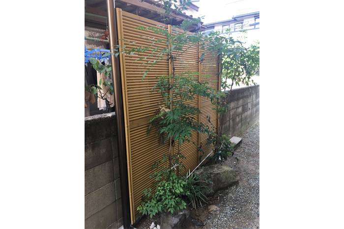 お隣との目隠しとして樹脂の竹垣を取り付けました。