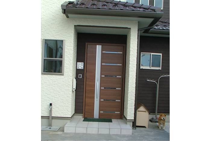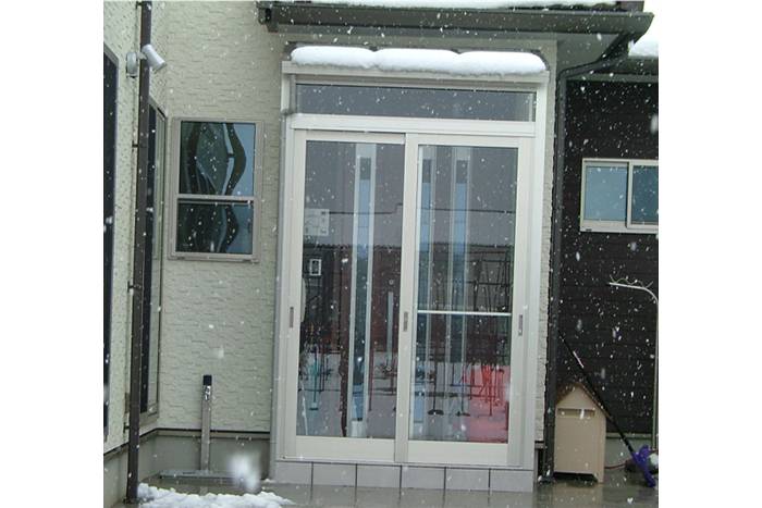 玄関ドアの開閉を考慮して屋根付きの風除室を取付け、本格的な冬の前に完成で安心です。