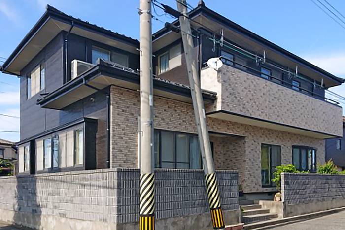 ◆After①【外壁サイディング材】ニチハ:センターサイディング FBネオレリーフプレミアム [色:ディープブラック] /【ベランダ部分等サイディング材】ニチハ:iシリーズ ソフィアブリック [色:SPチャコール]