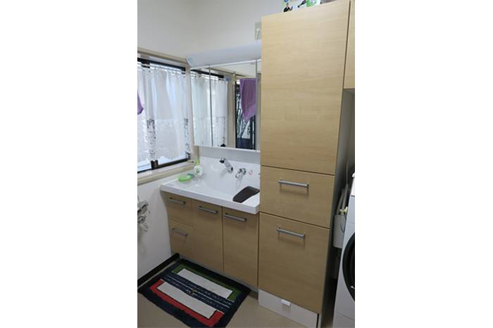 洗面化粧台工事 洗面化粧台 水回り 2018.9.11 ◆After①【洗面化粧台】LIXIL:ピアラ◆Before①【洗面化粧台】施工前◆After②【洗面化粧台】LIXIL:ピアラ ポイント 古くなった洗面化粧台を浴室工事と同時に入替しました。小物類をきれいに整理できるよう、トールキャビネットとウォールキャビネットも設置。収納力が大幅にアップしました。年配のご家族にも使いやすいようウォールキャビネットは低めの位置に設置しました。 使用した商品 ◆洗面化粧台 LIXIL:ピアラ 洗面化粧台のお見積りはこちらから 概算施工金額 ¥350,000 事例No.533-18-08-04