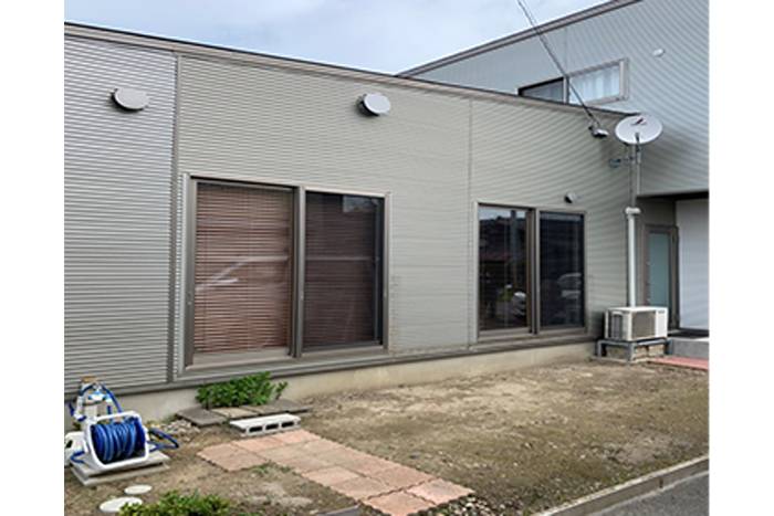 [建具仕様:正面4枚+2枚テラスサッシ(5mm透明ガラス)/側面高窓+FIX(3mm透明ガラス)]