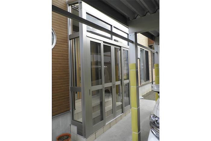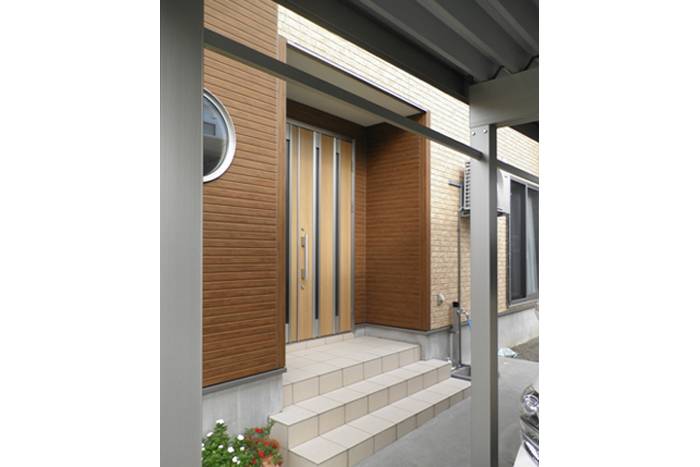 上段のポーチから玄関までの距離が短いため、屋根を取りつけて3面を囲いました。