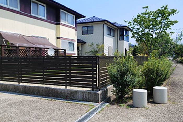レッドロビンの手入れや剪定が大変であり、植栽全を伐採・伐根を行ってフェンスに変更しました。
