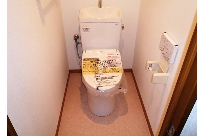 節水型便器とウォシュレットの交換、内装工事も一緒に施工しました。