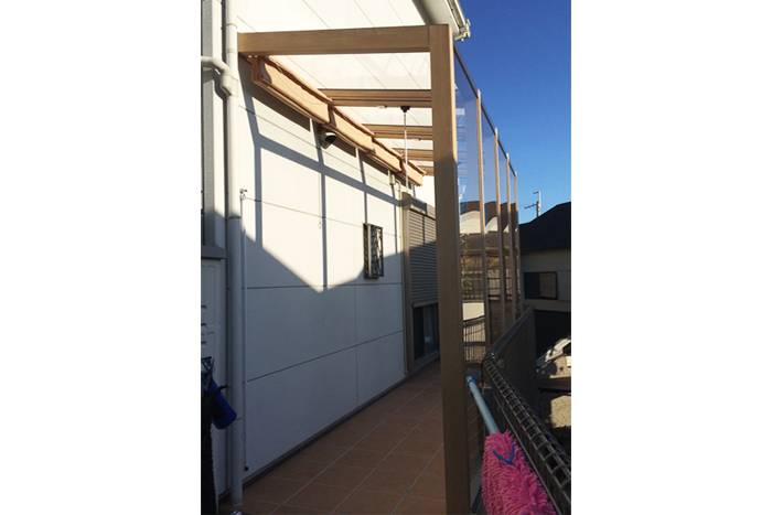 オプションに、日除けを付けて暑い日差しをカット。暗くなった夜に使用するLEDライトを。