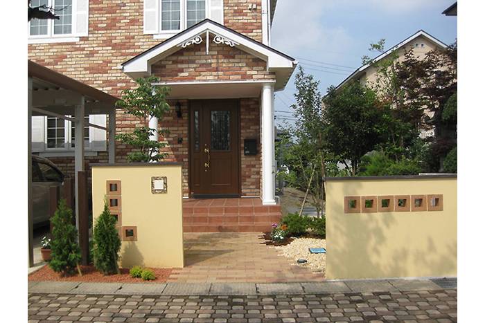 門柱(コテ塗り塀/透かしブロック)